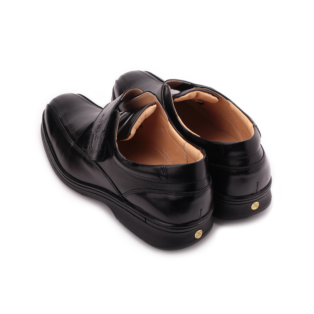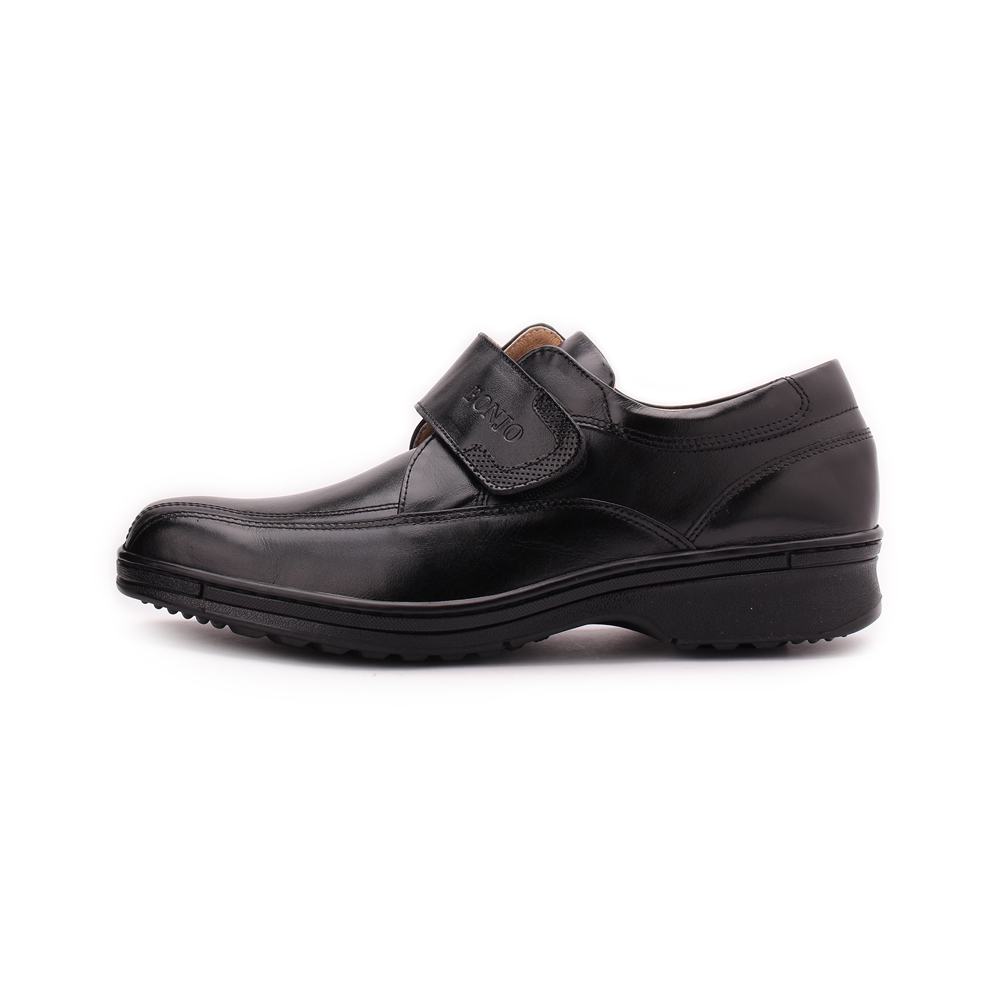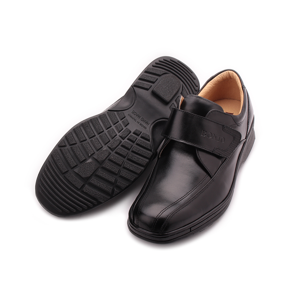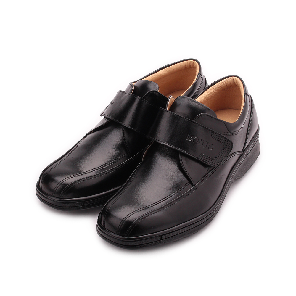 BONJO 特大尺碼真皮魔鬼氈氣墊休閒鞋 黑 男鞋