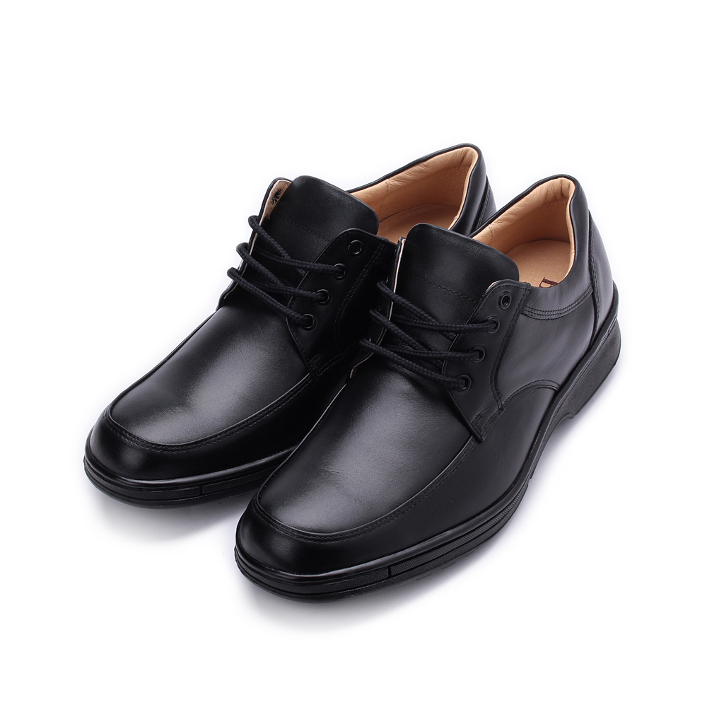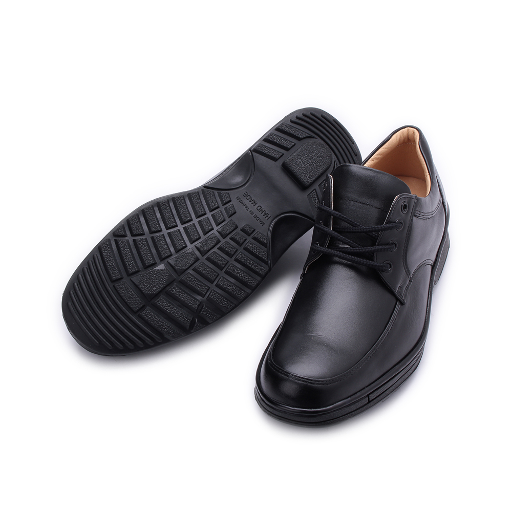 BONJO 特大尺碼真皮綁帶氣墊休閒鞋 黑 男鞋
