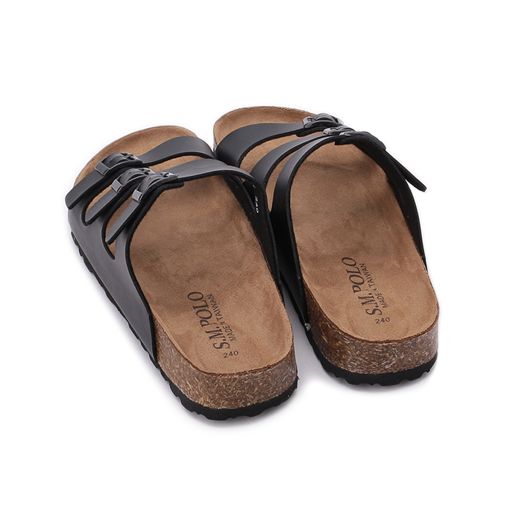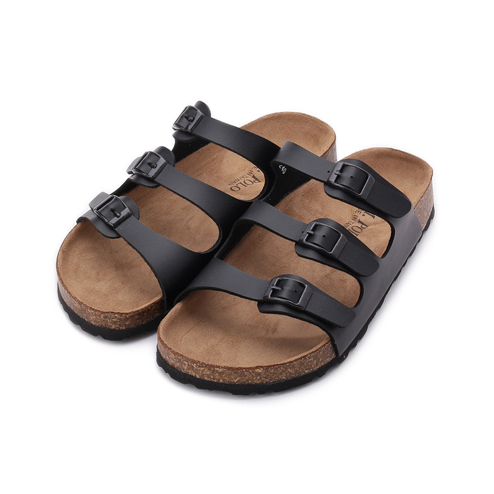 SM POLO 三橫帶腳床拖鞋 黑 2708 女鞋