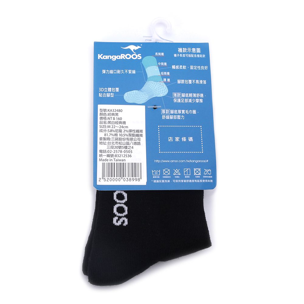 KANGAROOS 經典素色1/2襪 黑 KA32480