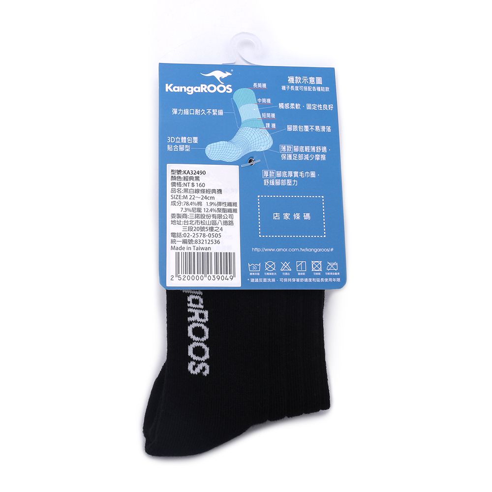 KANGAROOS 經典線條1/2襪 黑 KA32490