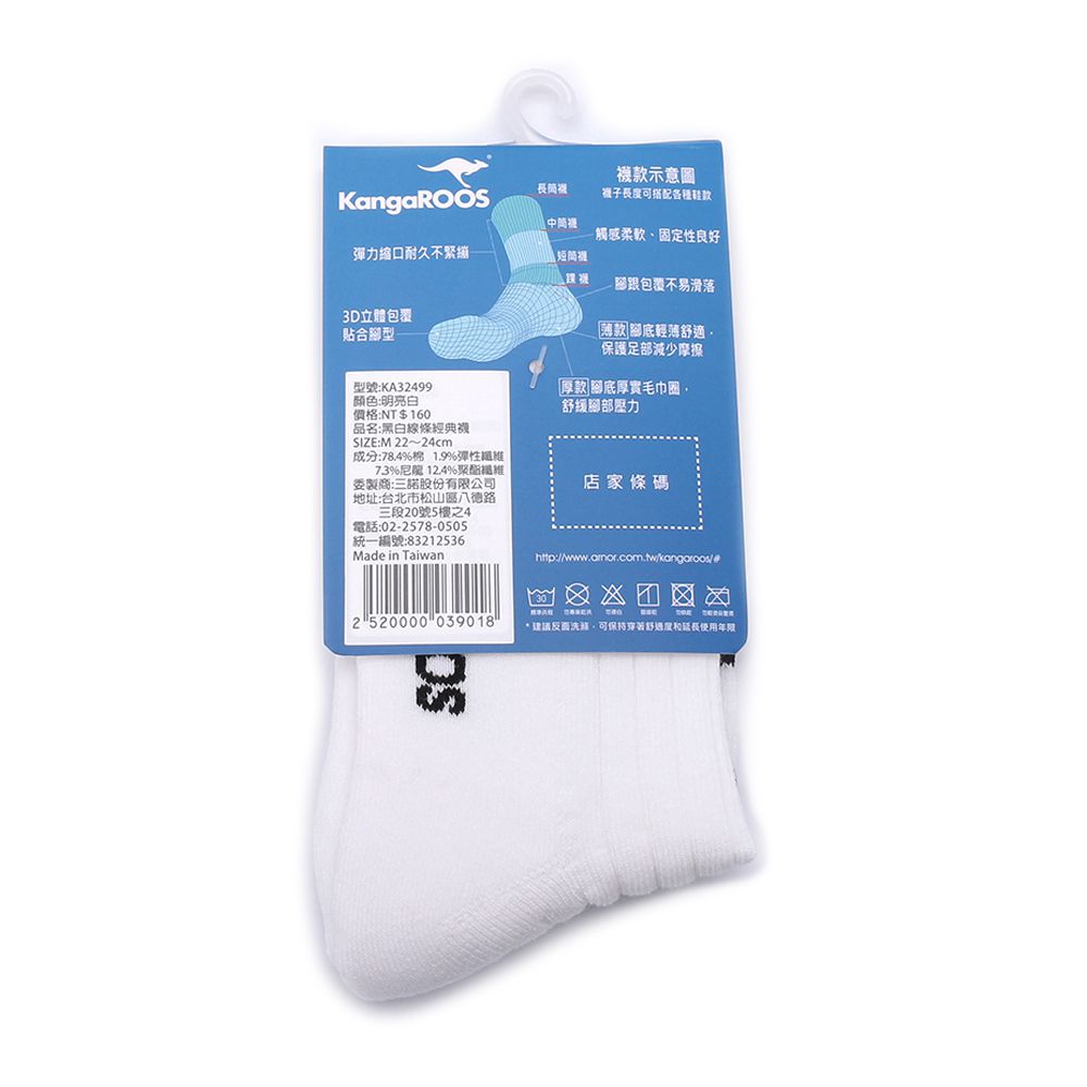 KANGAROOS 經典線條1/2襪 白 KA32499