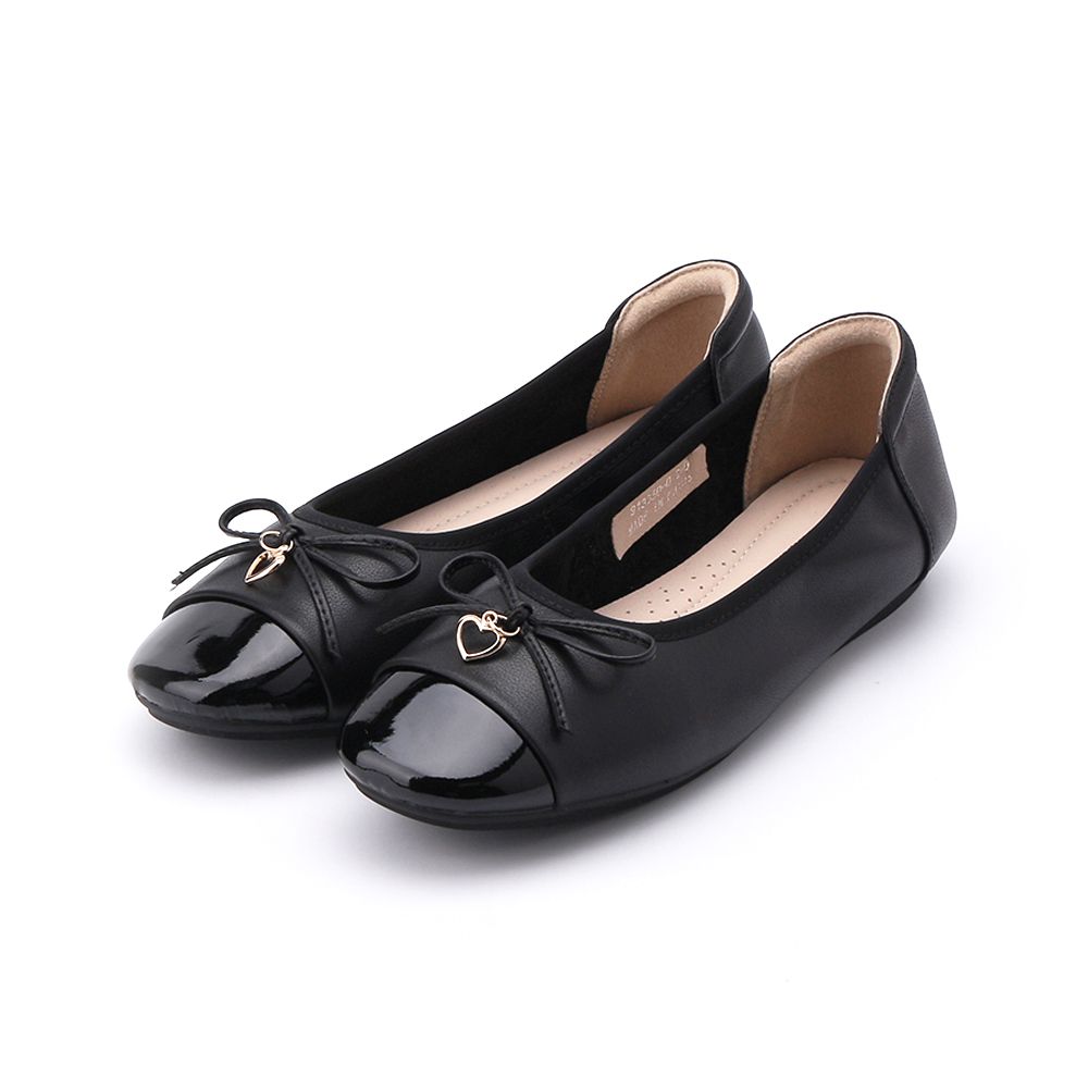 LUZZI 心釦蝴蝶結娃娃鞋 黑 女鞋