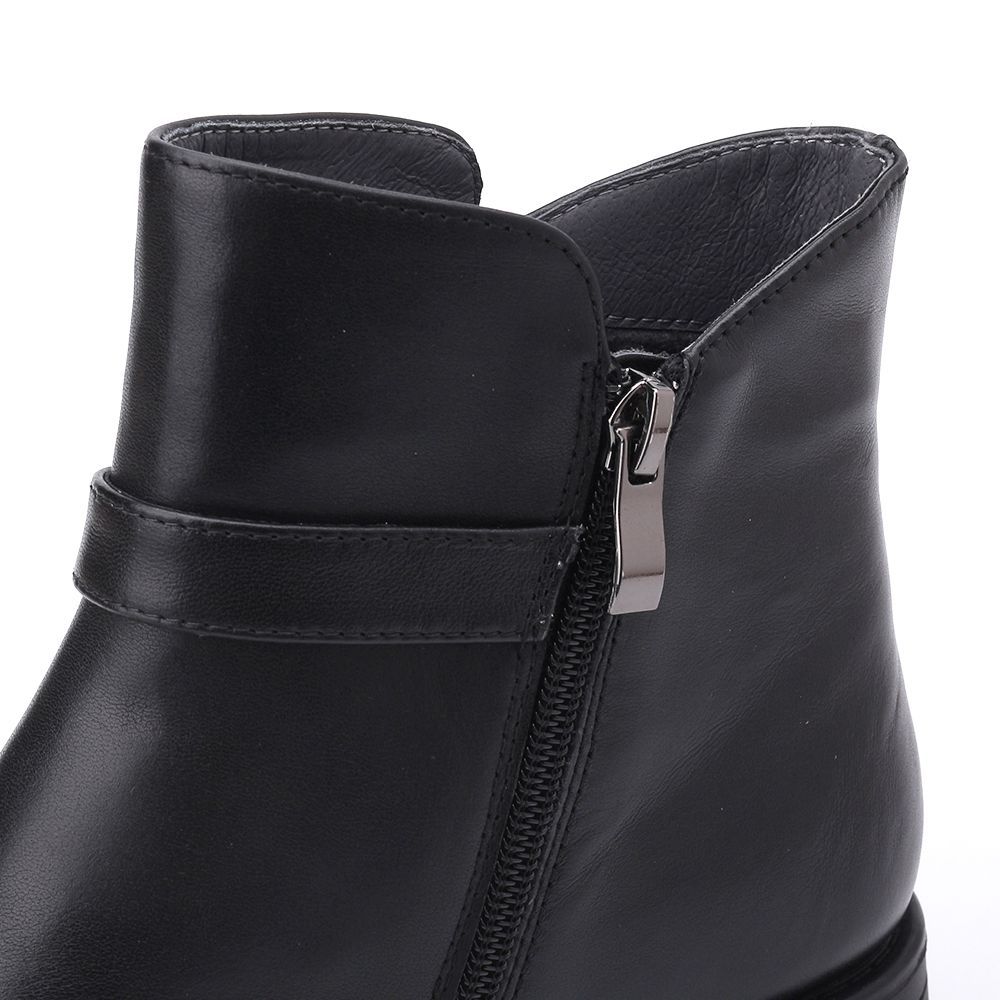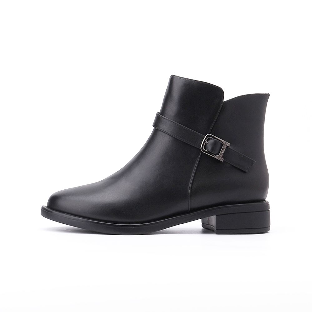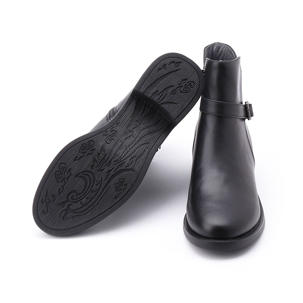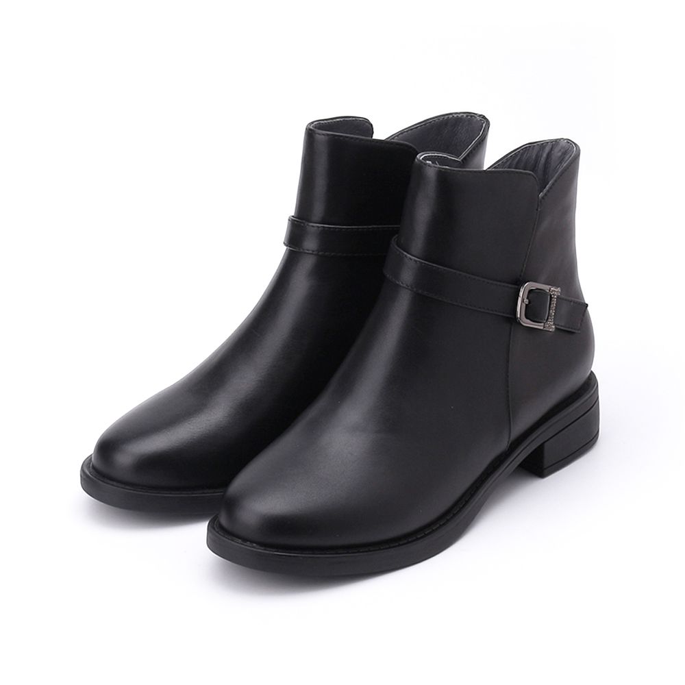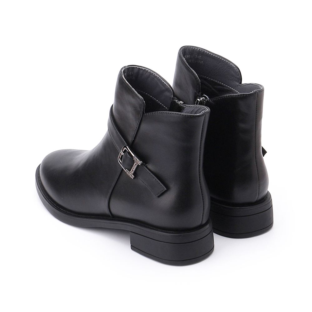 LUZZI 側鑽釦拉鍊短跟靴 黑 女鞋