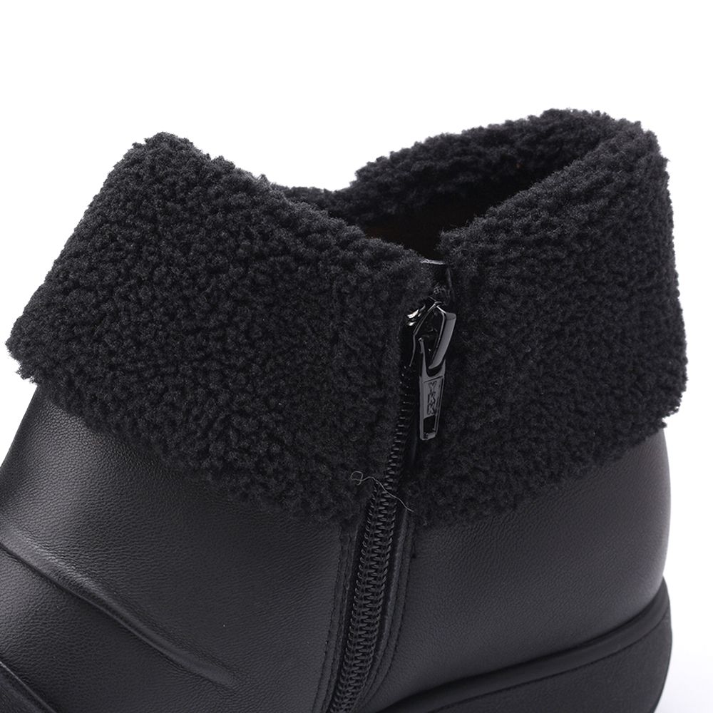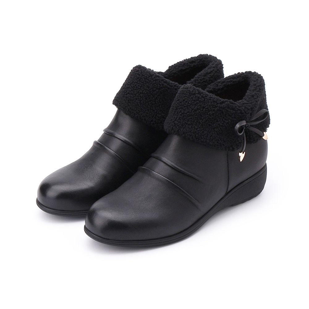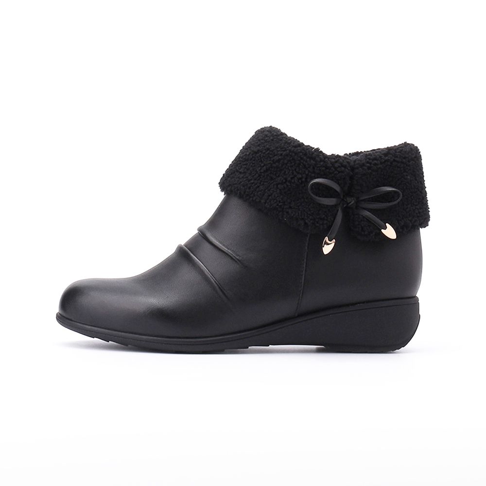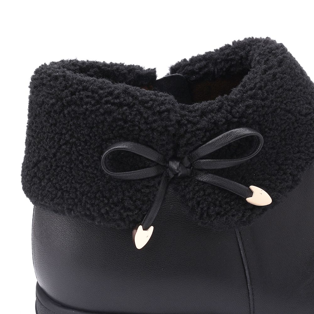 LUZZI 毛領蝴蝶結拉鍊短靴 黑 女鞋